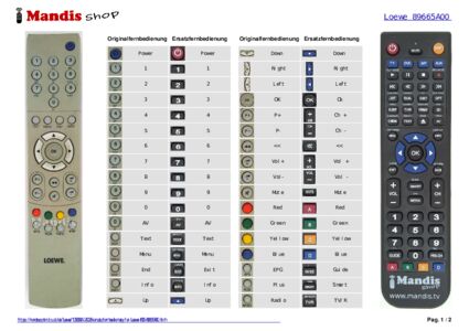 Ein Dokument ist enthalten, um die Verwendung der neuen Fernbedienung zu erleichtern, indem es die Tastenbelegung zeigt.
