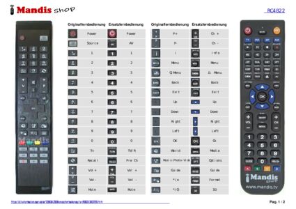 Ein Dokument ist enthalten, um die Verwendung der neuen Fernbedienung zu erleichtern, indem es die Tastenbelegung zeigt.