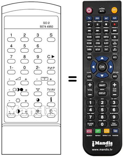Fernbedienung, die das Original und die Gesamtheit seiner Funktionen, vollständig ersetzt.