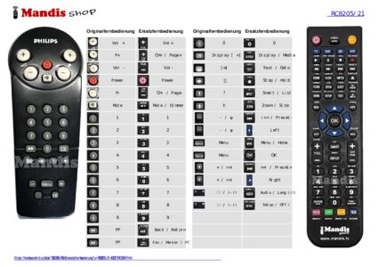 Diese Fernbedienung ersetzt Ihre RC8205/21 (482221910289) in vollem Umfang und bietet alle Funktionen des Originals.