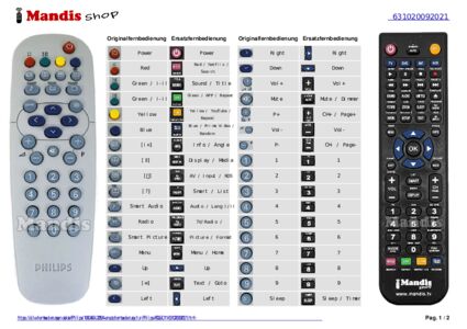 Ein Dokument ist enthalten, um die Verwendung der neuen Fernbedienung zu erleichtern, indem es die Tastenbelegung zeigt.