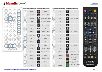 Die original Fernbedienung meines Panasonic Beamers war unreperabl defekt. Ein Ersatz war nirgends zu finden. Zum Glück entdeckte ich Mandis und bestellte die Ersatzfernbedienung nach der Originalnummer. Die nach kurzer Lieferzeit eingelangte Ersatzfernbedienung erfüllt alle, für den Betrieb wesentlichen Funktionen und es gibt dafür eine perfekte Anleitung.Das umständliche Einstellen von Schärfe, Zoom, Menue usw. direkt am Beamer geht jetzt wieder per Fernbedienung. Danke Mandis!!