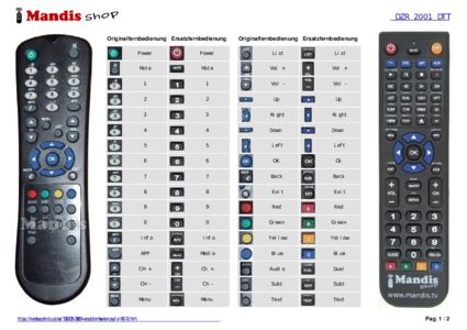 Ein Dokument ist enthalten, um die Verwendung der neuen Fernbedienung zu erleichtern, indem es die Tastenbelegung zeigt.