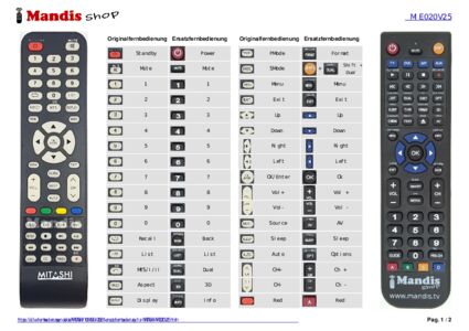 Home > Marken > Fernbedienungen MITASHI > Fernbedienung für MITASHI MIE020V25