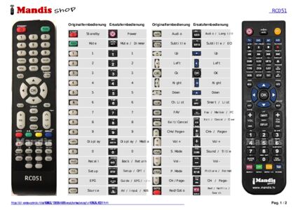 Diese Fernbedienung ersetzt Ihre RC051 in vollem Umfang und bietet alle Funktionen des Originals.
