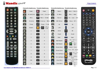 Diese Fernbedienung ersetzt Ihre TES32 (TE32) in vollem Umfang und bietet alle Funktionen des Originals.
