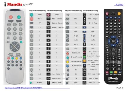 Ein Dokument ist enthalten, um die Verwendung der neuen Fernbedienung zu erleichtern, indem es die Tastenbelegung zeigt.