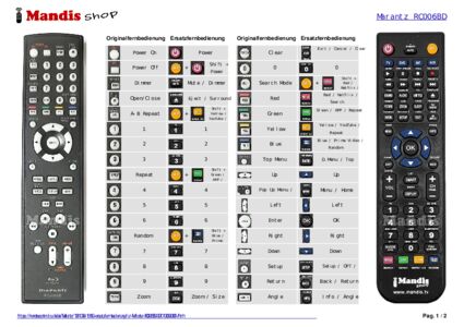 Ein Dokument ist enthalten, um die Verwendung der neuen Fernbedienung zu erleichtern, indem es die Tastenbelegung zeigt.