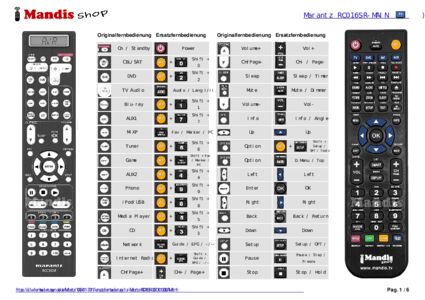 Ein Dokument ist enthalten, um die Verwendung der neuen Fernbedienung zu erleichtern, indem es die Tastenbelegung zeigt.