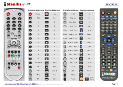 Ein Dokument ist enthalten, um die Verwendung der neuen Fernbedienung zu erleichtern, indem es die Tastenbelegung zeigt.