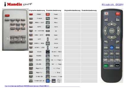 Ein Dokument ist enthalten, um die Verwendung der neuen Fernbedienung zu erleichtern, indem es die Tastenbelegung zeigt.