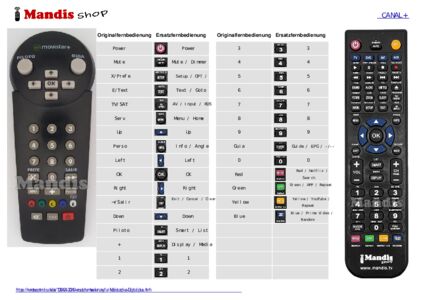 Ein Dokument ist enthalten, um die Verwendung der neuen Fernbedienung zu erleichtern, indem es die Tastenbelegung zeigt.