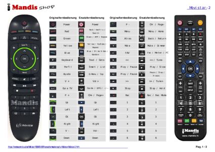 Ein Dokument ist enthalten, um die Verwendung der neuen Fernbedienung zu erleichtern, indem es die Tastenbelegung zeigt.