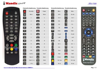 Ein Dokument ist enthalten, um die Verwendung der neuen Fernbedienung zu erleichtern, indem es die Tastenbelegung zeigt.