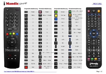 Ein Dokument ist enthalten, um die Verwendung der neuen Fernbedienung zu erleichtern, indem es die Tastenbelegung zeigt.