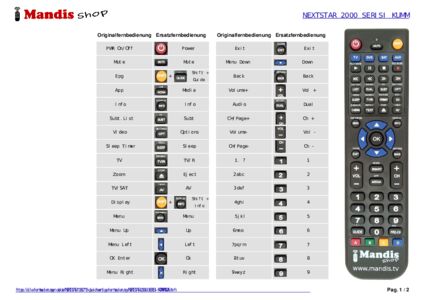 Ein Dokument ist enthalten, um die Verwendung der neuen Fernbedienung zu erleichtern, indem es die Tastenbelegung zeigt.