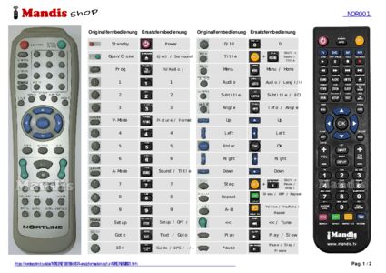 Ein Dokument ist enthalten, um die Verwendung der neuen Fernbedienung zu erleichtern, indem es die Tastenbelegung zeigt.