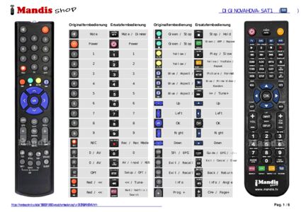 Ein Dokument ist enthalten, um die Verwendung der neuen Fernbedienung zu erleichtern, indem es die Tastenbelegung zeigt.