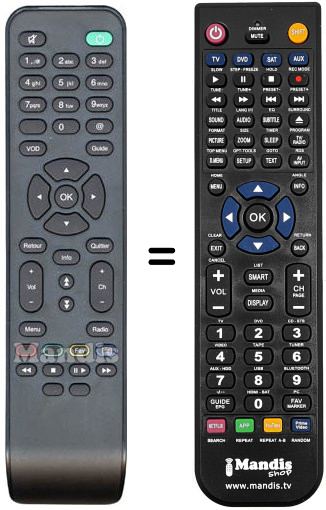 Fernbedienung, die das Original und die Gesamtheit seiner Funktionen, vollständig ersetzt.