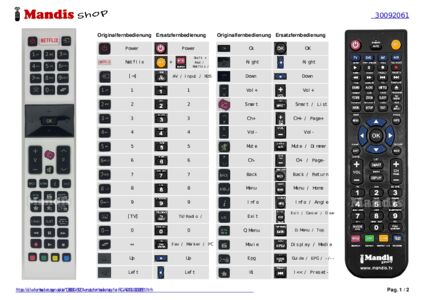 Ein Dokument ist enthalten, um die Verwendung der neuen Fernbedienung zu erleichtern, indem es die Tastenbelegung zeigt.