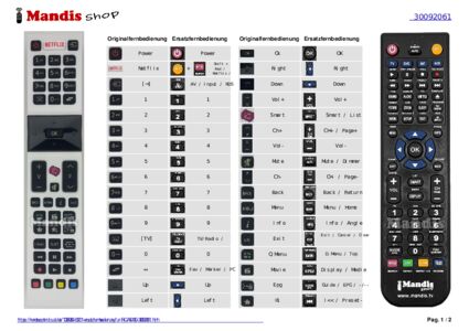 Ein Dokument ist enthalten, um die Verwendung der neuen Fernbedienung zu erleichtern, indem es die Tastenbelegung zeigt.