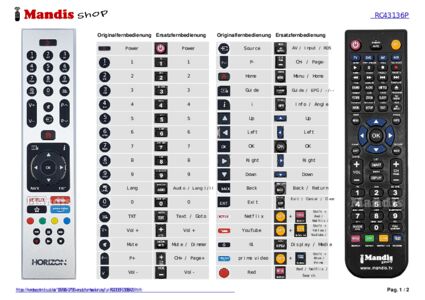 Home > Marken > Fernbedienungen Nabo > Fernbedienung für Nabo RC43136P > Interaktive Tastenbelegung Nabo RC43136P