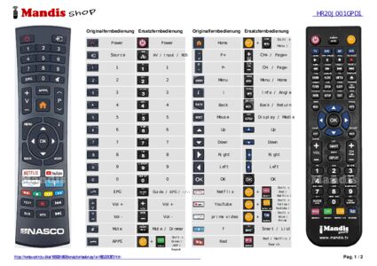 Ein Dokument ist enthalten, um die Verwendung der neuen Fernbedienung zu erleichtern, indem es die Tastenbelegung zeigt.