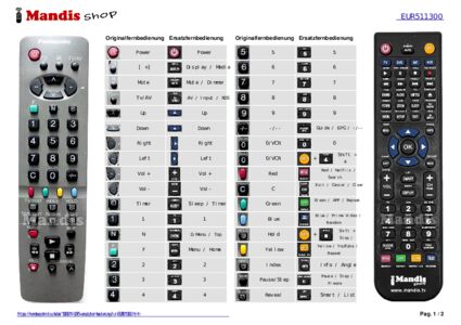 Ein Dokument ist enthalten, um die Verwendung der neuen Fernbedienung zu erleichtern, indem es die Tastenbelegung zeigt.