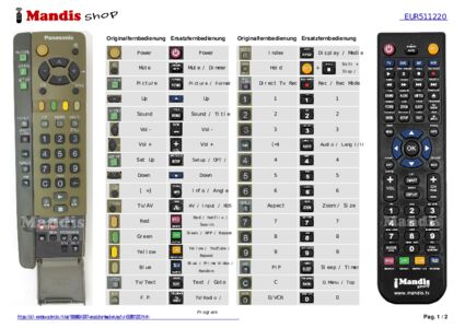 Ein Dokument ist enthalten, um die Verwendung der neuen Fernbedienung zu erleichtern, indem es die Tastenbelegung zeigt.