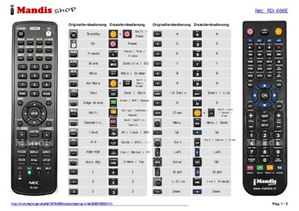Ein Dokument ist enthalten, um die Verwendung der neuen Fernbedienung zu erleichtern, indem es die Tastenbelegung zeigt.
