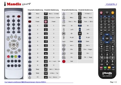 Ein Dokument ist enthalten, um die Verwendung der neuen Fernbedienung zu erleichtern, indem es die Tastenbelegung zeigt.