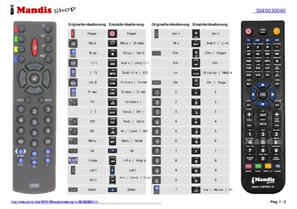 Diese Fernbedienung ersetzt Ihre 2500 (S040030040) in vollem Umfang und bietet alle Funktionen des Originals.