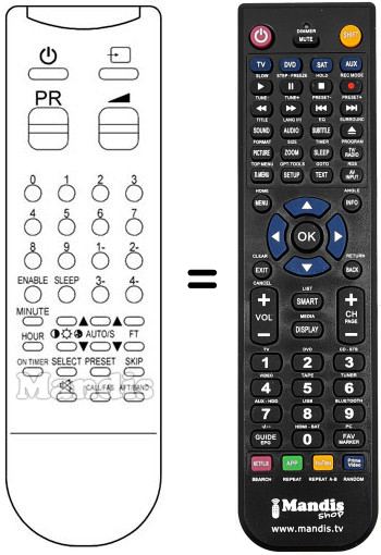 Fernbedienung, die das Original und die Gesamtheit seiner Funktionen, vollständig ersetzt. Es handelt sich jedoch nicht um eine Universalfernbedienung sondern um eine Fernbedienung die das Original ersetzt. Sie erhalten eine nach Einlegen der Batterien sofort einsatzbereite Fernbedienung. Jegliches Programmieren entfällt. Wir geben umfassende Garantie dafür, dass diese Fernbedienung alle Funktionen der Originalfernbedienung erfüllt.