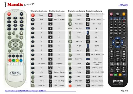 Diese Fernbedienung ersetzt Ihre NPG005 in vollem Umfang und bietet alle Funktionen des Originals.