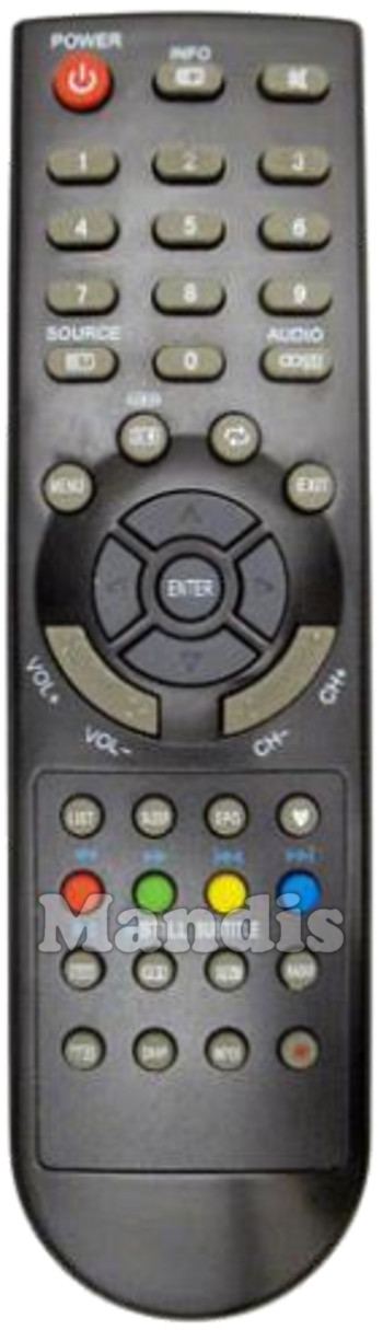 Power, Info, Mute, 1, 2, 3, 4, 5, 6, 7, 8, 9, 0, Source, Audio, Menu, , Recall, Exit, Up, Down, Right, Left, Enter, Vol +, Vol -, CH +, CH -, List, Sleep, EPG, Fav, Red / <<, Green / >>, Yellow / I<<, Blue / >>I, Text / Play, Still / Stop, Subtitle, Radio, [=X], DMP, Index, Rec