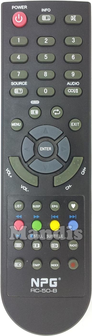 Fernbedienung Original RC-50-B zur Steuerung der TV-Geräte der Marke Npg. Es handelt sich um eine Originalfernbedienung.