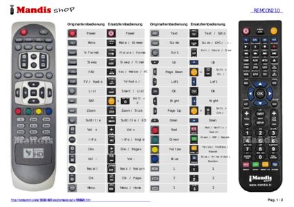 Ein Dokument ist enthalten, um die Verwendung der neuen Fernbedienung zu erleichtern, indem es die Tastenbelegung zeigt.