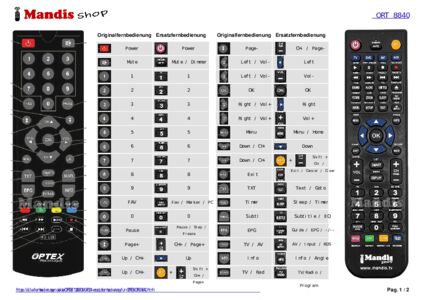 Diese Fernbedienung ersetzt Ihre ORT 8840 in vollem Umfang und bietet alle Funktionen des Originals.