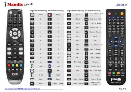 Ein Dokument ist enthalten, um die Verwendung der neuen Fernbedienung zu erleichtern, indem es die Tastenbelegung zeigt.