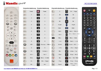 Ein Dokument ist enthalten, um die Verwendung der neuen Fernbedienung zu erleichtern, indem es die Tastenbelegung zeigt.