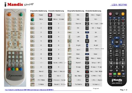 Ein Dokument ist enthalten, um die Verwendung der neuen Fernbedienung zu erleichtern, indem es die Tastenbelegung zeigt.