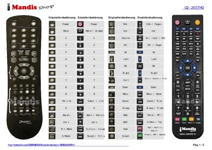 Diese Fernbedienung ersetzt Ihre O2-2657HD in vollem Umfang und bietet alle Funktionen des Originals.