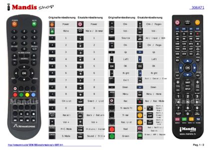 Ein Dokument ist enthalten, um die Verwendung der neuen Fernbedienung zu erleichtern, indem es die Tastenbelegung zeigt.