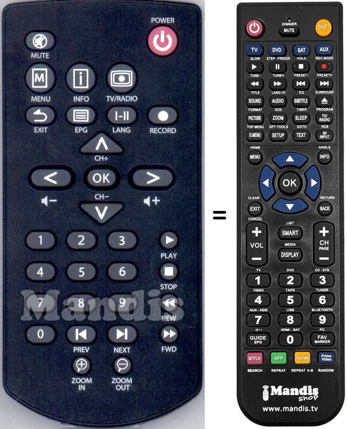 Es handelt sich jedoch nicht um eine Universalfernbedienung sondern um eine Fernbedienung die das Original ersetzt.