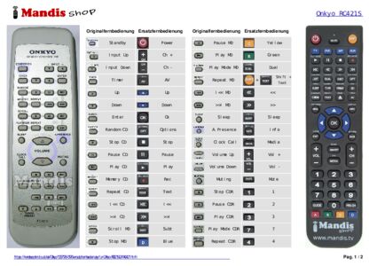 Ein Dokument ist enthalten, um die Verwendung der neuen Fernbedienung zu erleichtern, indem es die Tastenbelegung zeigt.