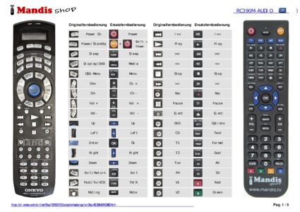 Ein Dokument ist enthalten, um die Verwendung der neuen Fernbedienung zu erleichtern, indem es die Tastenbelegung zeigt.