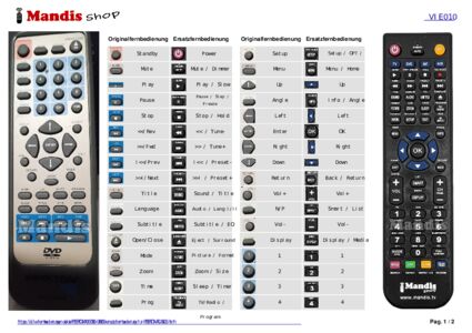 Ein Dokument ist enthalten, um die Verwendung der neuen Fernbedienung zu erleichtern, indem es die Tastenbelegung zeigt.
