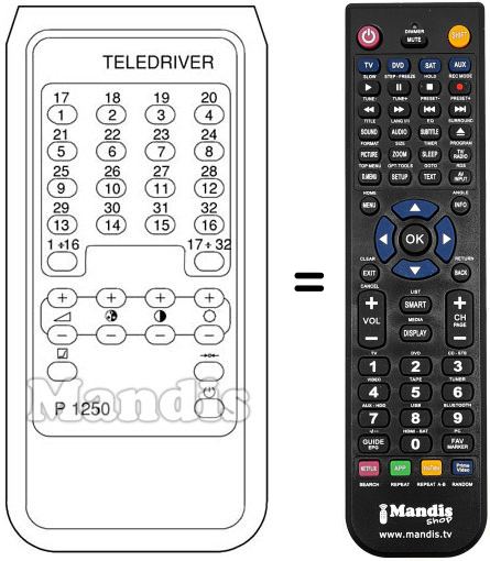 Fernbedienung, die das Original und die Gesamtheit seiner Funktionen, vollständig ersetzt.