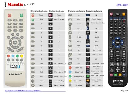 Diese Fernbedienung ersetzt Ihre RMT-500A (REMCON1942) in vollem Umfang und bietet alle Funktionen des Originals.
