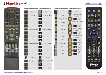 Ein Dokument ist enthalten, um die Verwendung der neuen Fernbedienung zu erleichtern, indem es die Tastenbelegung zeigt.